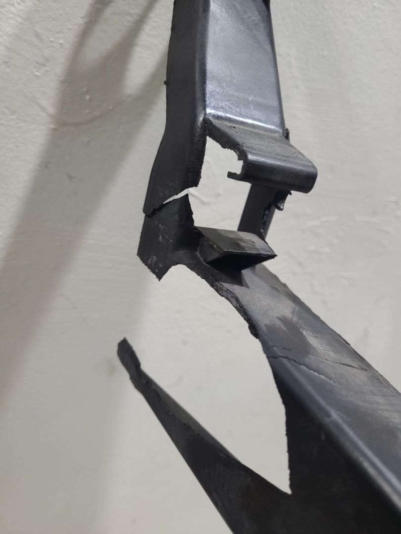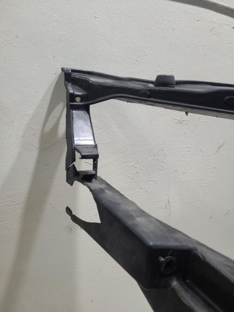 Отломано правое крепление возле фары, трещина.