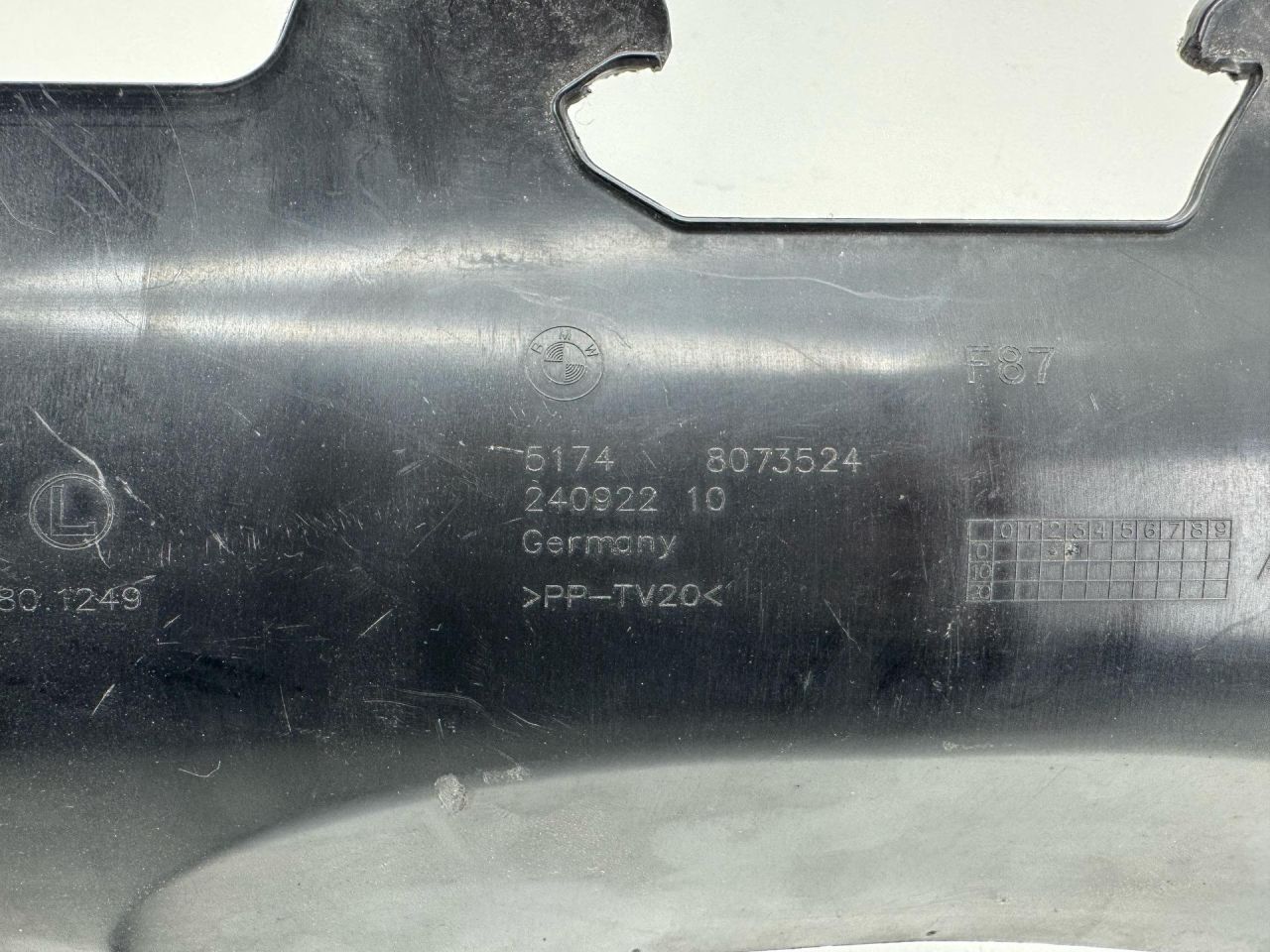 Нижний воздуховод BMW2. Полностью обломано одно из креплений и часть второго(смотрите фото). По остальному все хорошо,без сколов и трещин.