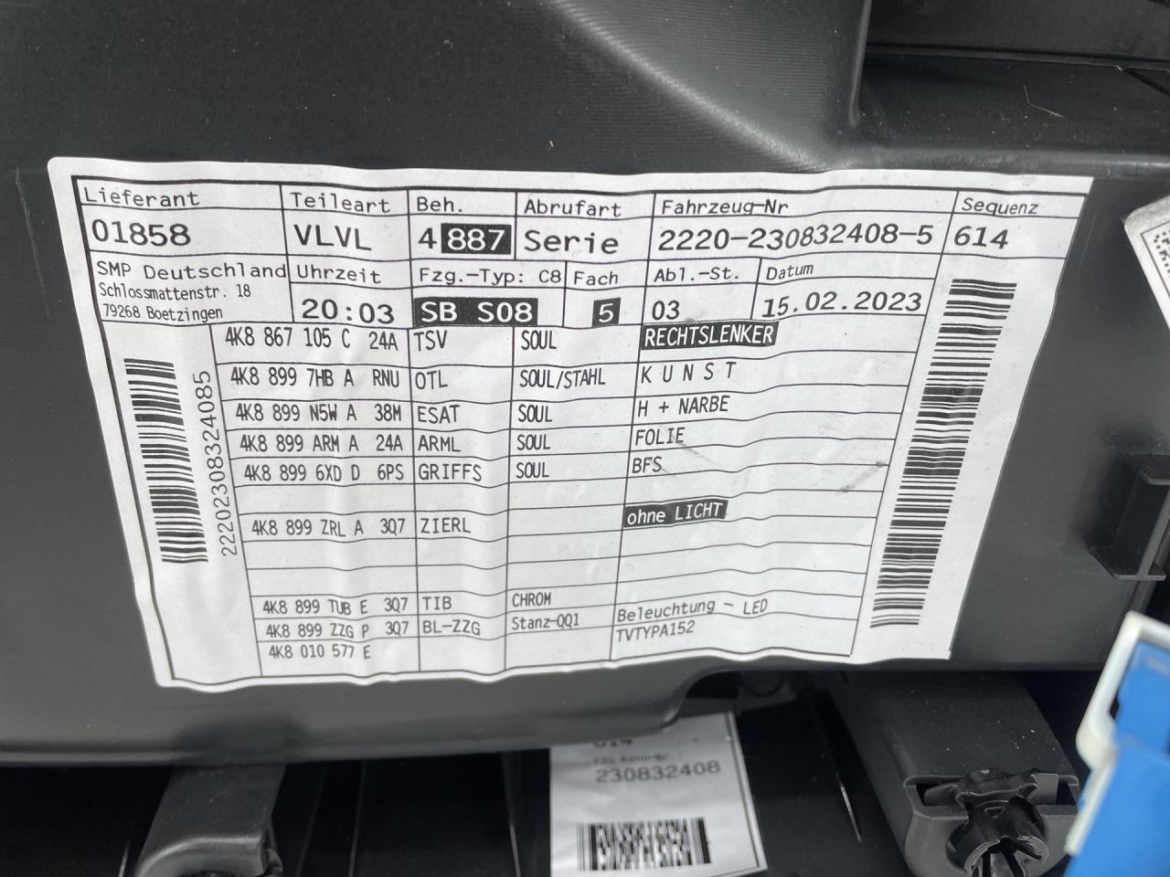 | Номер запчасти | 4K8867117A, 4K8971036F |