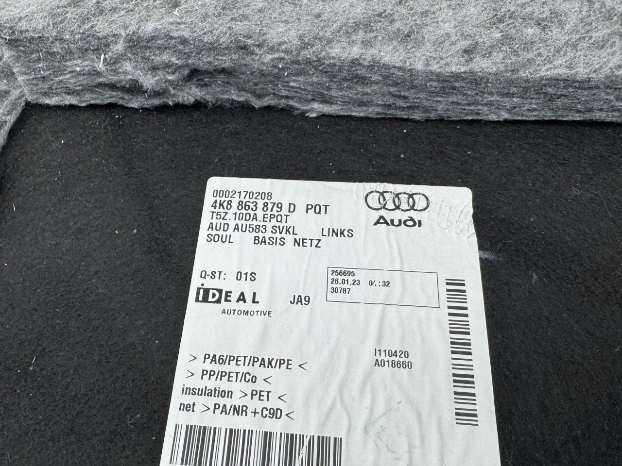 Обшивка багажного отсека (левая) для Audi A7 (4K) 2023 г.в., лифтбэк. Оригинальная деталь, номер 4K8863879D. Состояние б/у, но без сколов и трещин. На ткани есть небольшие загрязнения, которые легко очистить. Идеально подойдёт для замены повреждённой панели в салоне. Хранится на тёплом складе. Готовы ответить на ваши вопросы по детали и помочь с выбором.