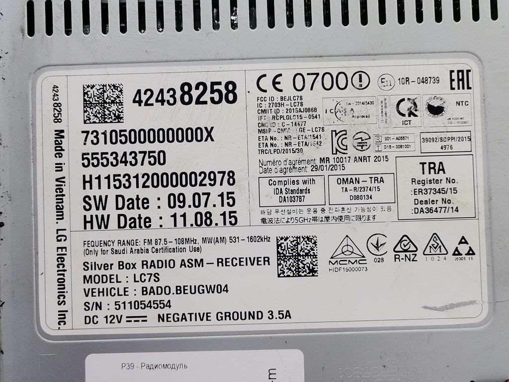 | Номер запчасти | 42438258 |