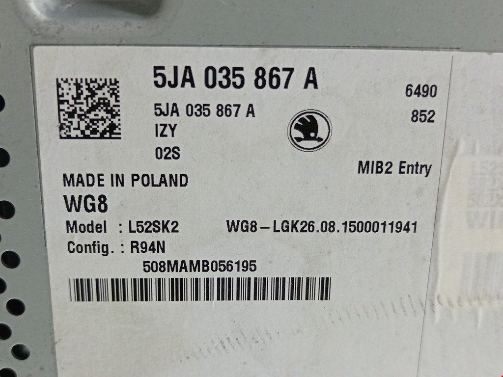 Магнитола Skoda Rapid NH 2015