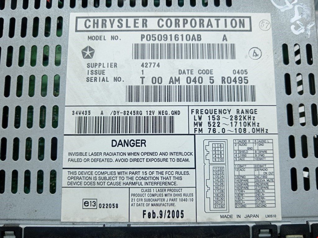 Магнитола Chrysler Voyager 4 рест. 2007