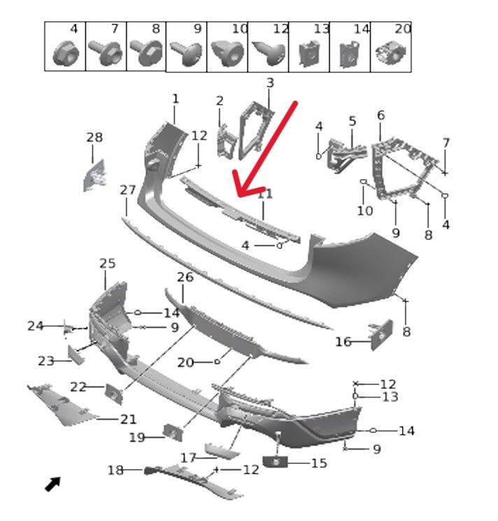 Кронштейн (крепление) заднего бампера средний Voyah Free H97a2804020aa 280411001