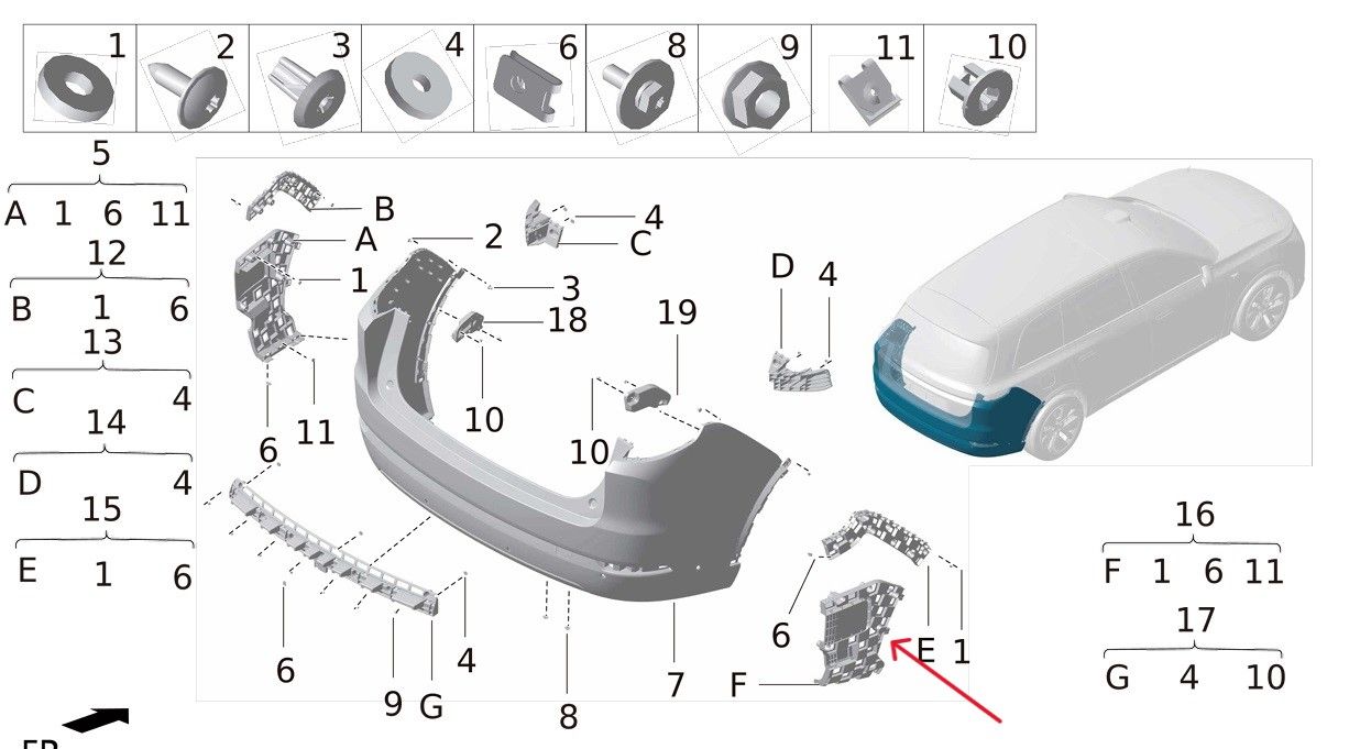 Кронштейн (крепление) заднего бампера правый LiXiang L9 X0128040042 X0128040043