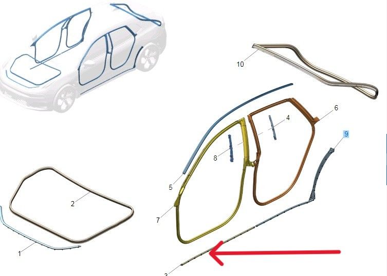 Уплотнительная резинка двери передняя левая нижняя (на дверь) ZEEKR 001 8890895274