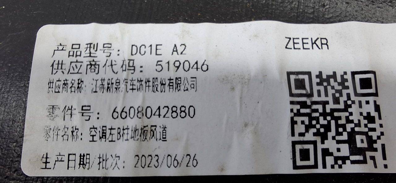 Воздуховод левый ZEEKR 001 рест 6608042880