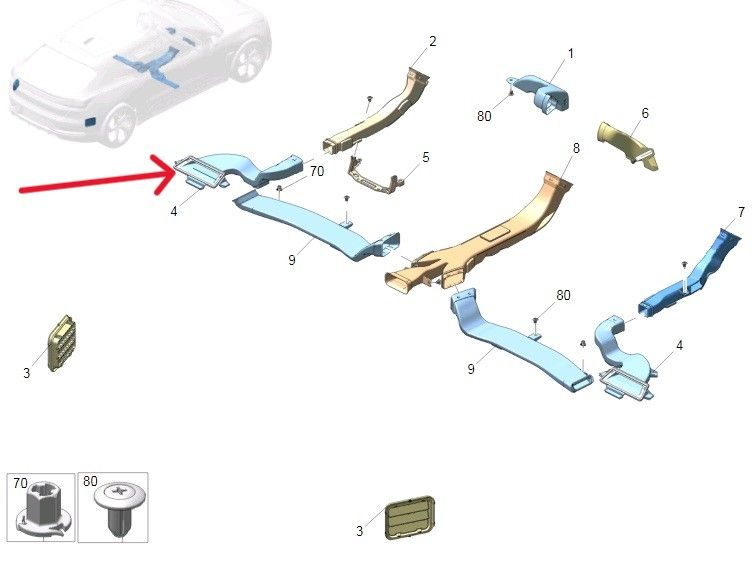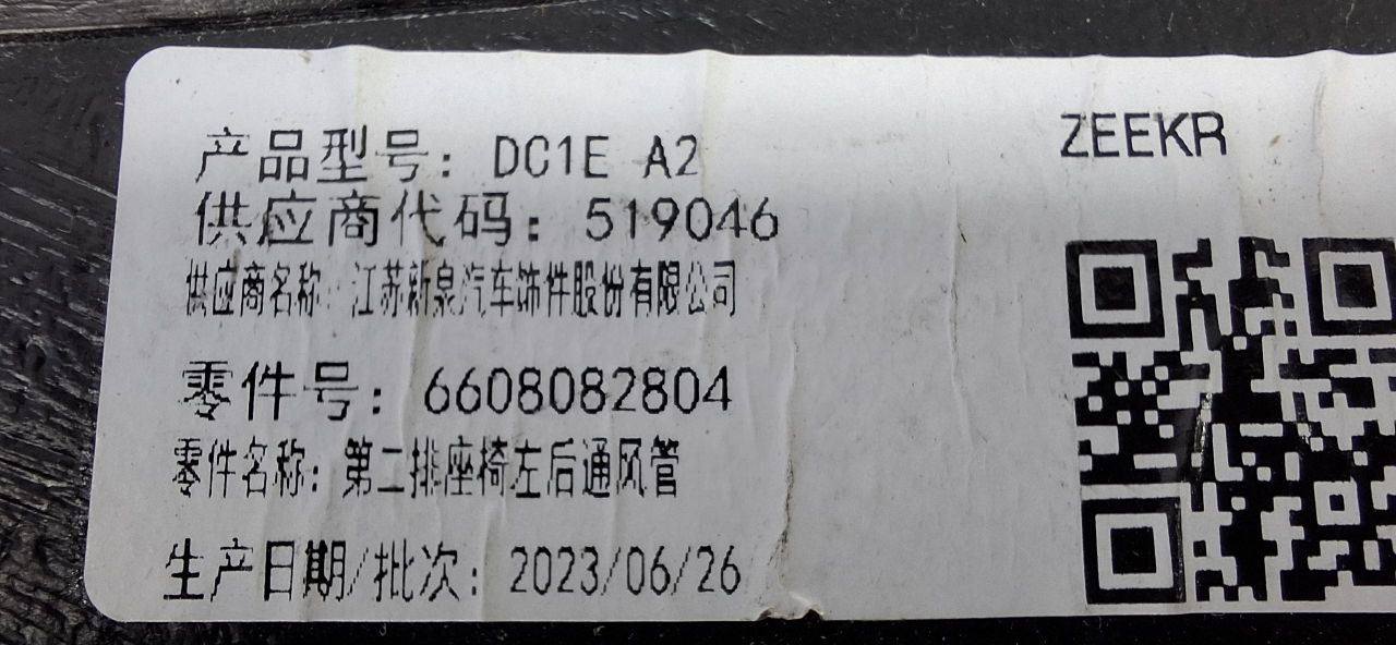 Воздуховод задний левый ZEEKR 001 рест 6608082804