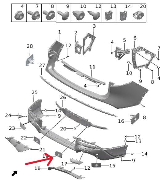 Крепление парктроника в вставку заднего бампера правое Voyah Free H97C2804018BA 280409018