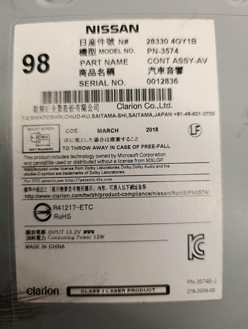 Магнитола Infiniti QX30 2018