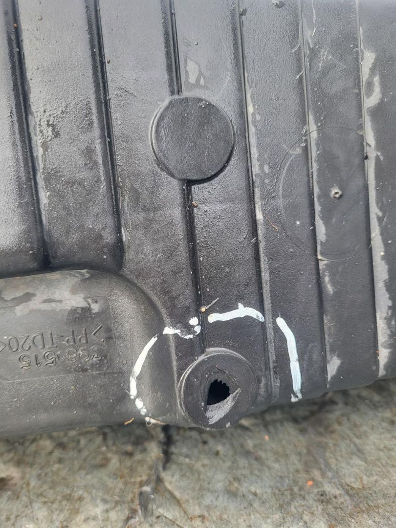 Дефект низа, выломано крепление со сквозным отверстием.