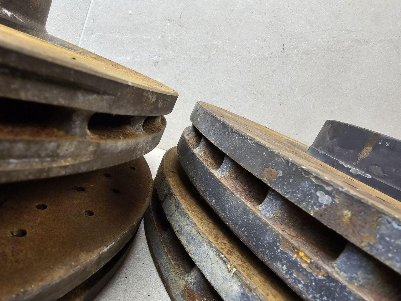 Комплект как на фото ,один задний тормозной диск с дефектом.