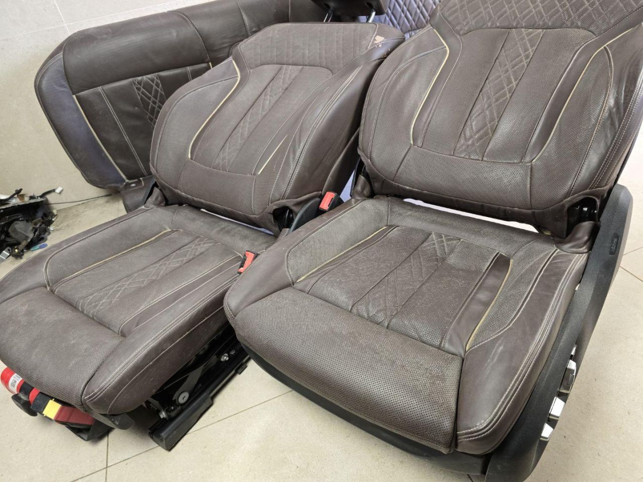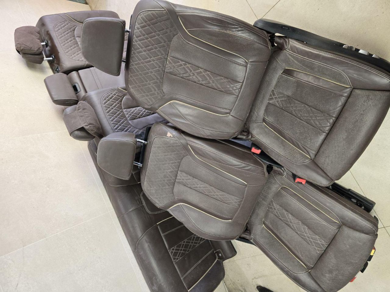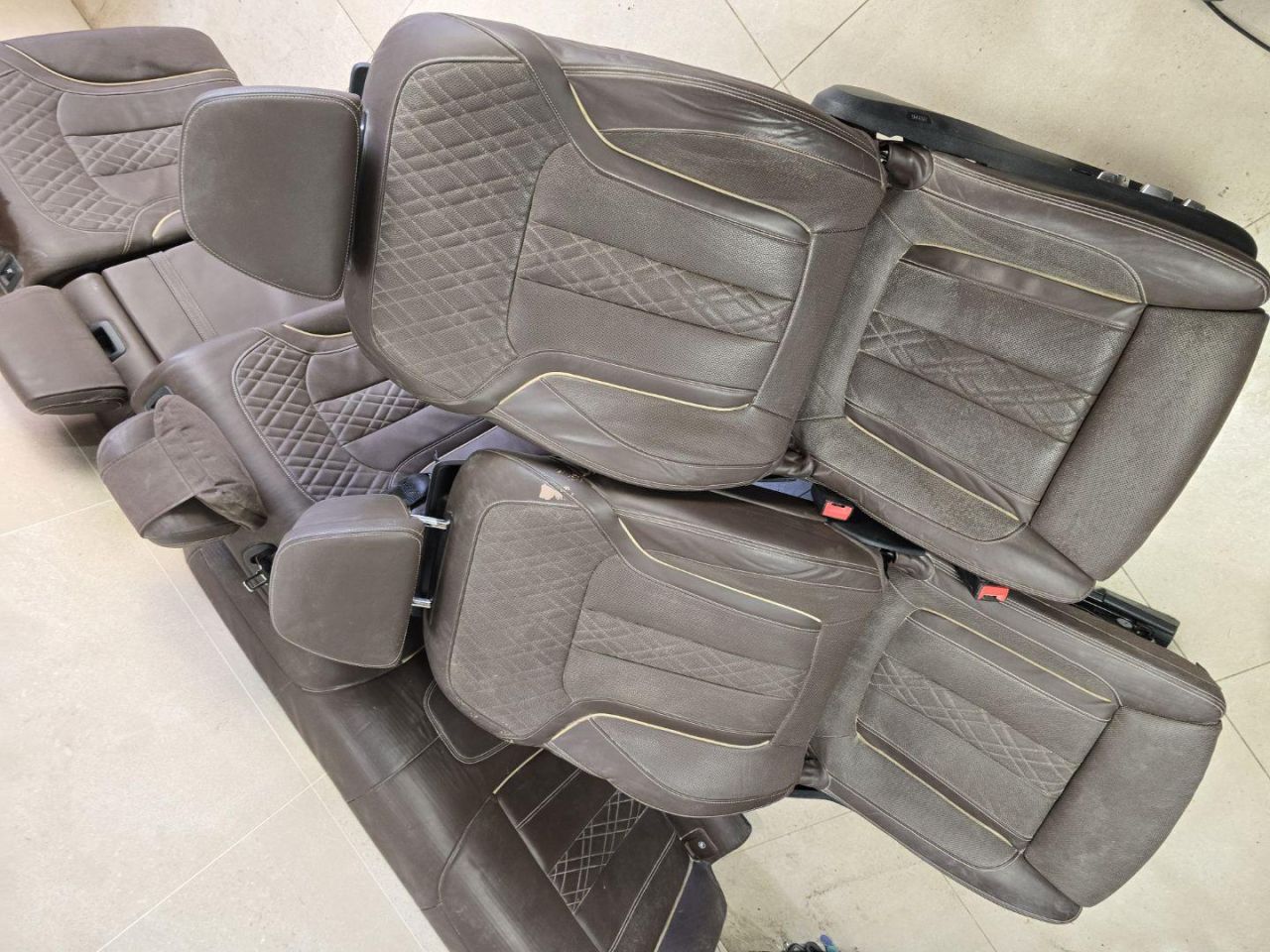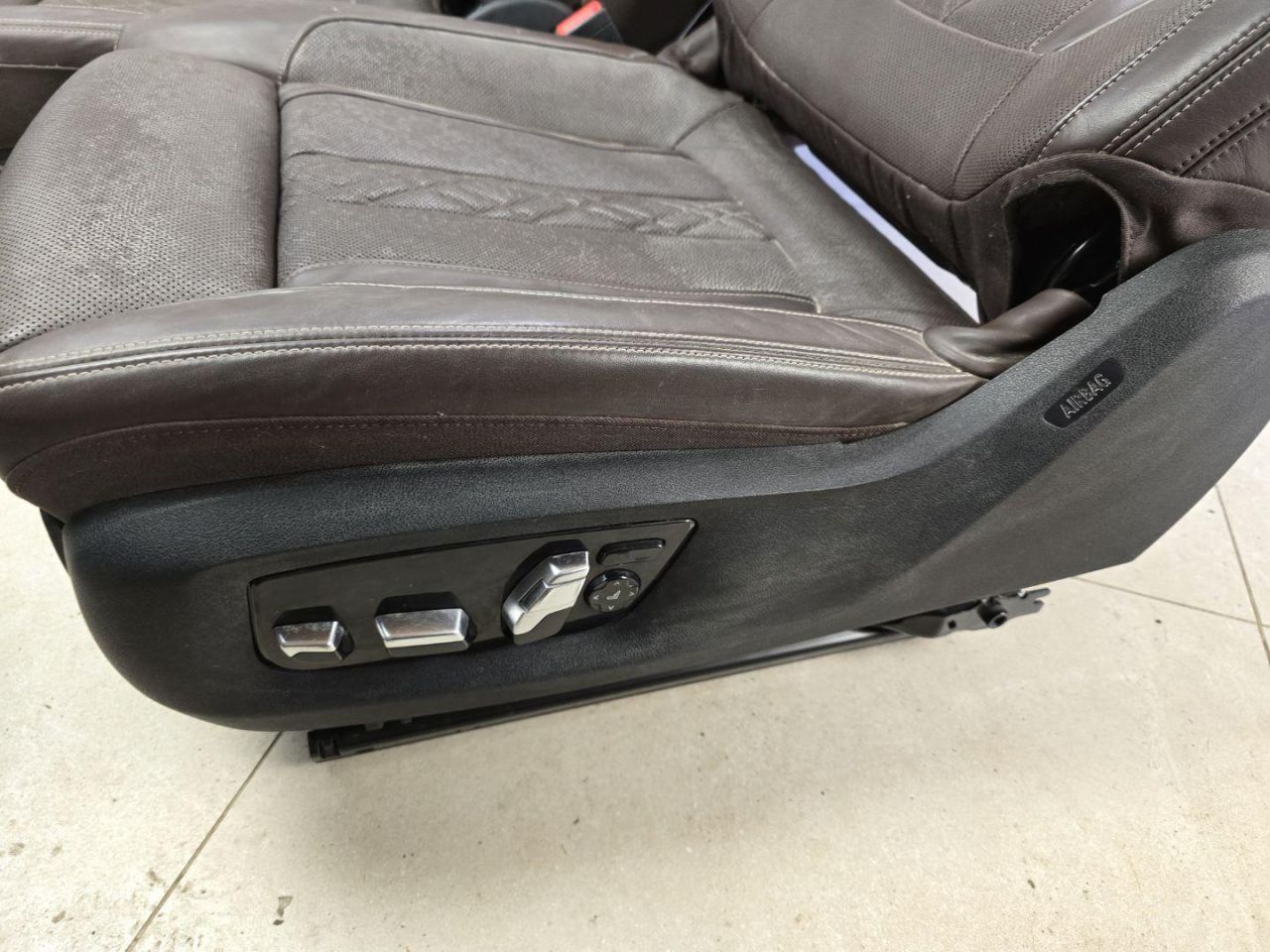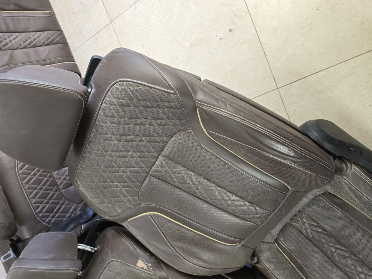 Комплект передних сидений цвет Mokka с мониторами. Европа. На пассажирском сиденье есть дефекты кожи,можно подкрасить,требуется чистка сидений.
