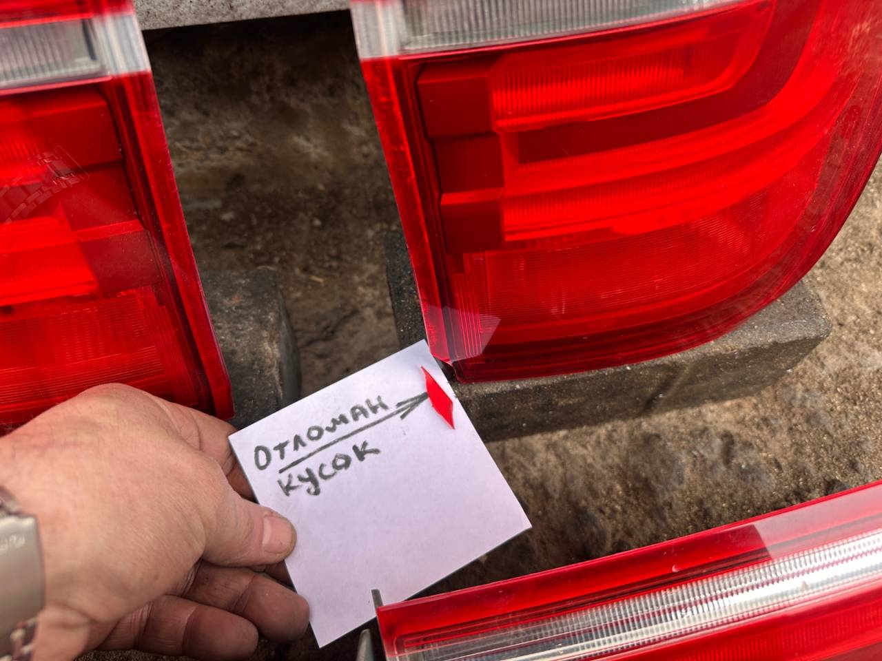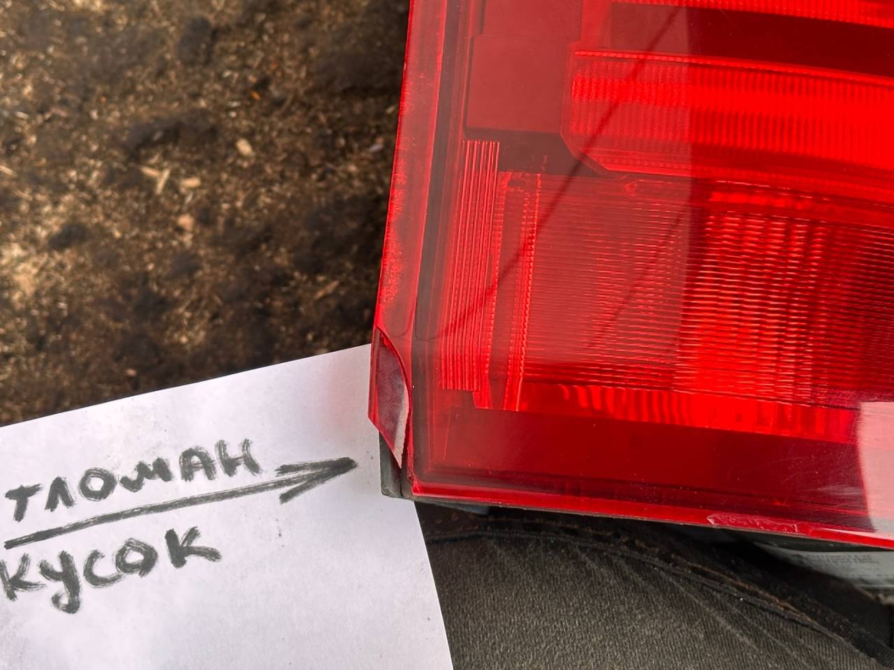 На одном кузовном фонаре отломано 2 (два) кусочка. Один кусочек - есть. Второго - нет.