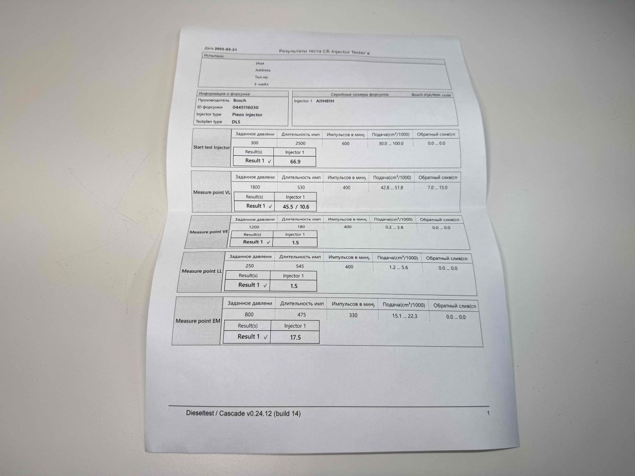 BOSCH. Из Англии. Хорошее состояние. Проверена на стенде. Сопротивление пьезо пакета 182 кОм. Все параметры в пределах допуска. Тест план прилагается.