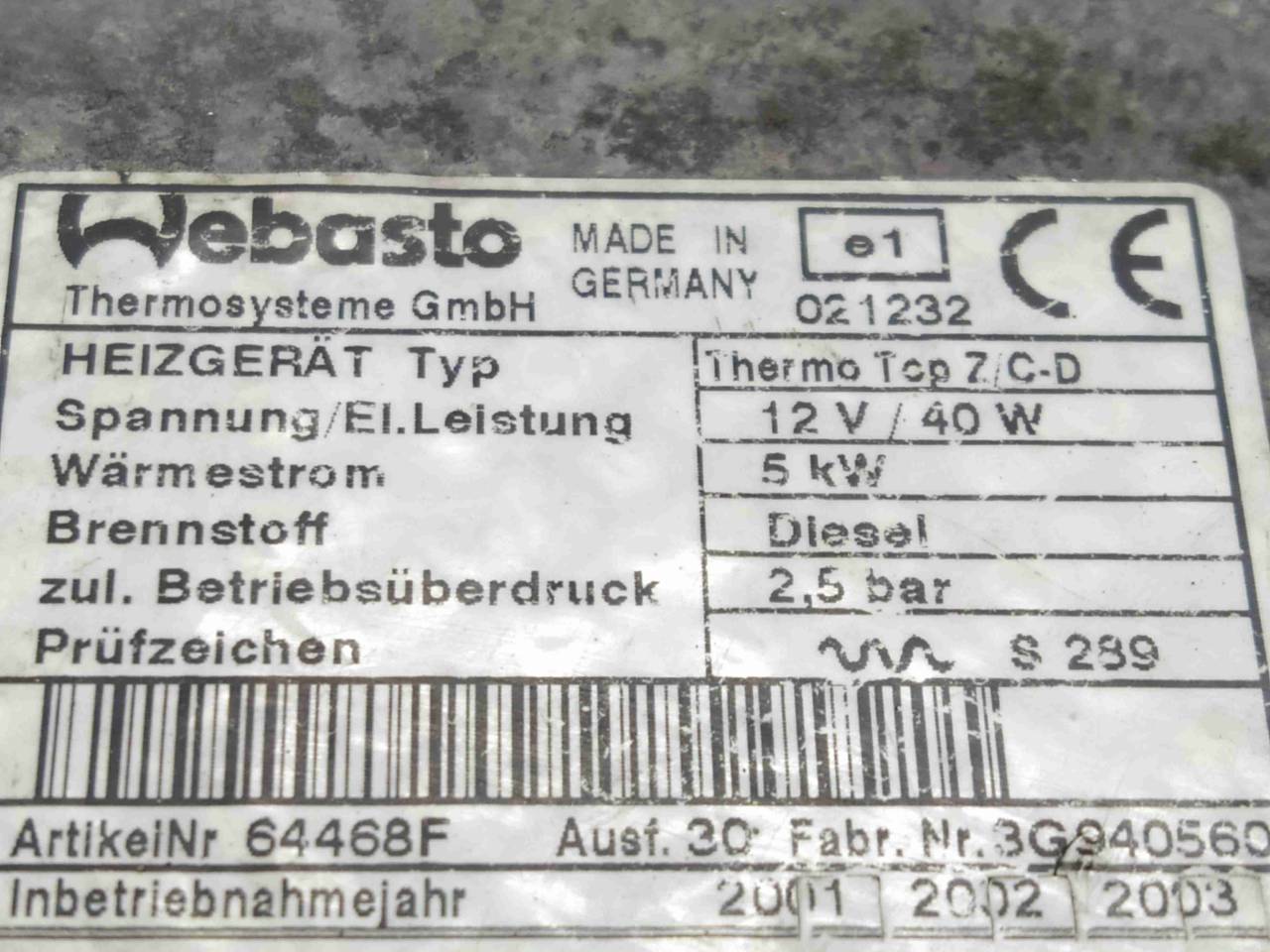 WEBASTO. 5kW. Termo Top Z/C-D. Из Англии. Хорошее состояние.