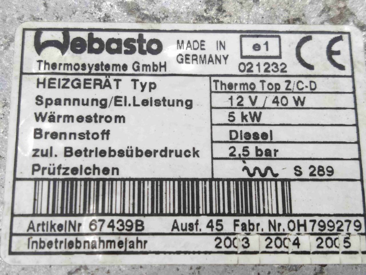 WEBASTO. 5KW. DIESEL. Termo Top Z/C-D. В сборе с доп.помпой и глушителем. Из Англии. Хорошее состояние.