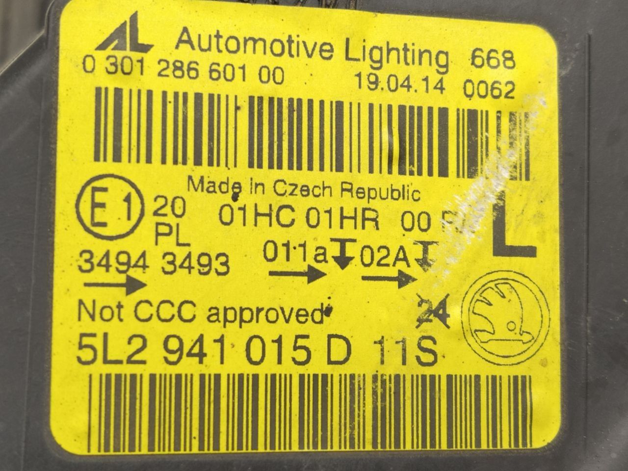 Фара левая Skoda Yeti 2014