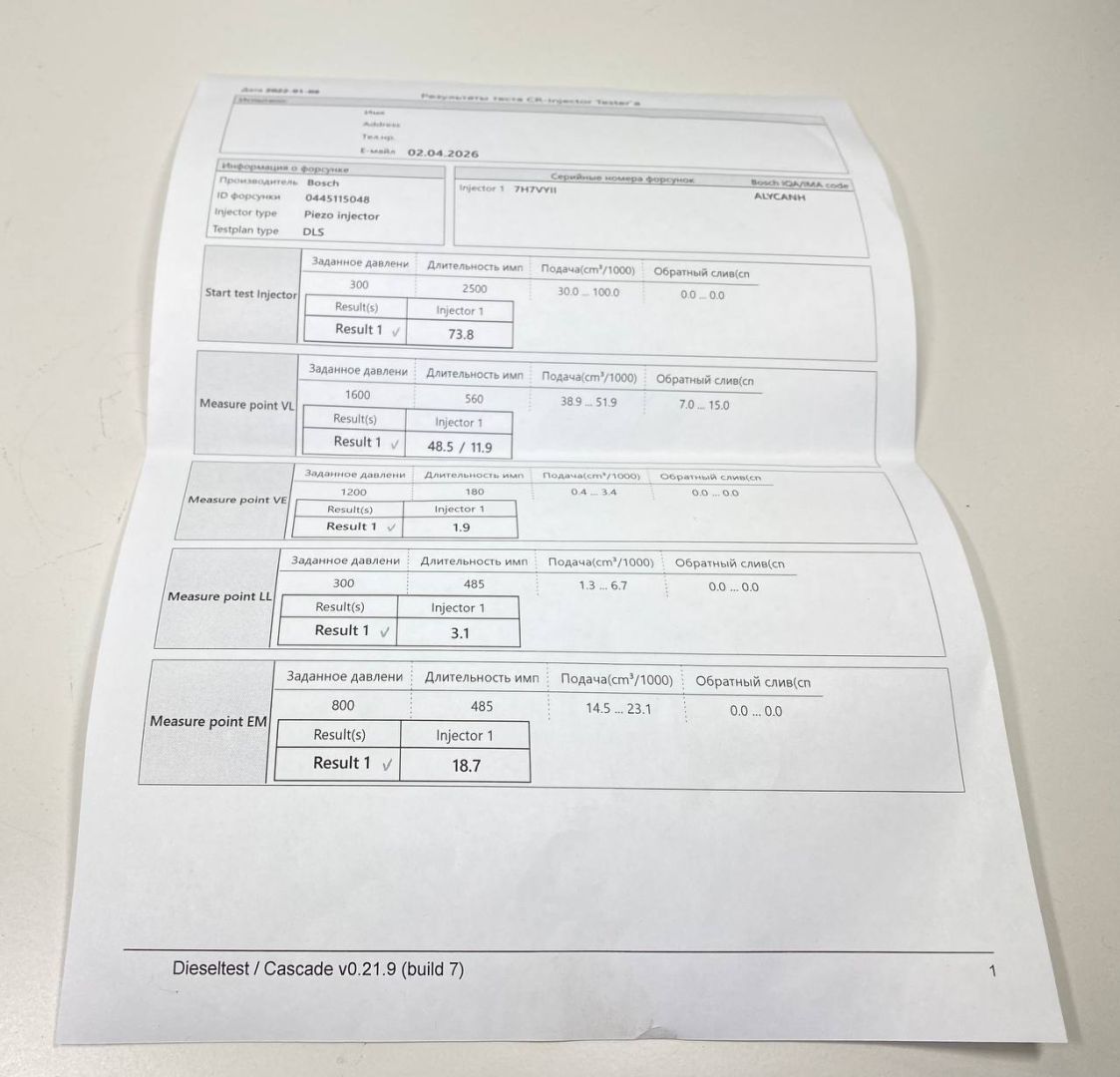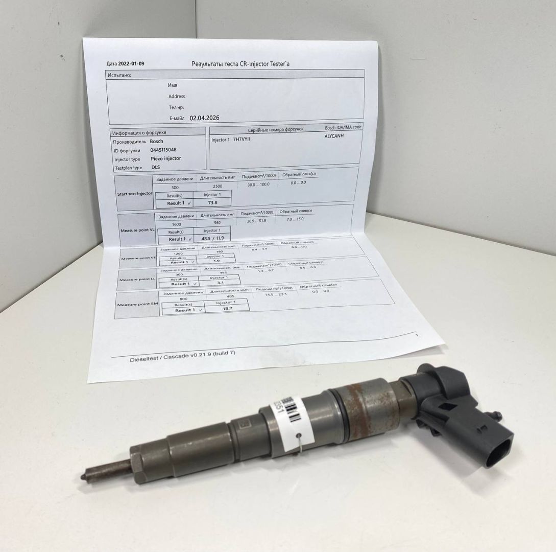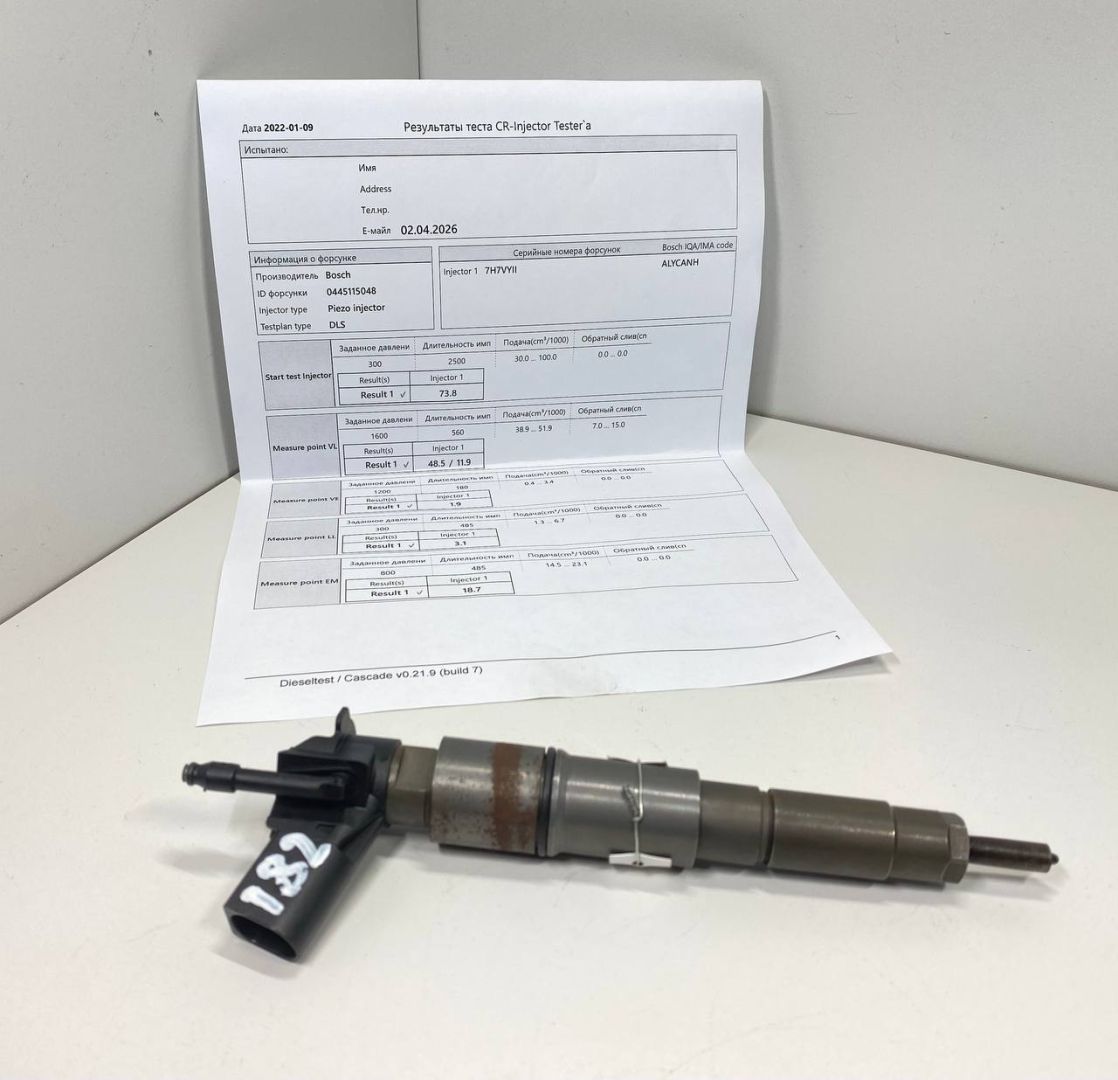 BOSCH. Из Англии. Хорошее состояние. Проверена на стенде. Все параметры в пределах допуска. Сопротивление пьезо пакета 182 кОм. Тест план прилагается.