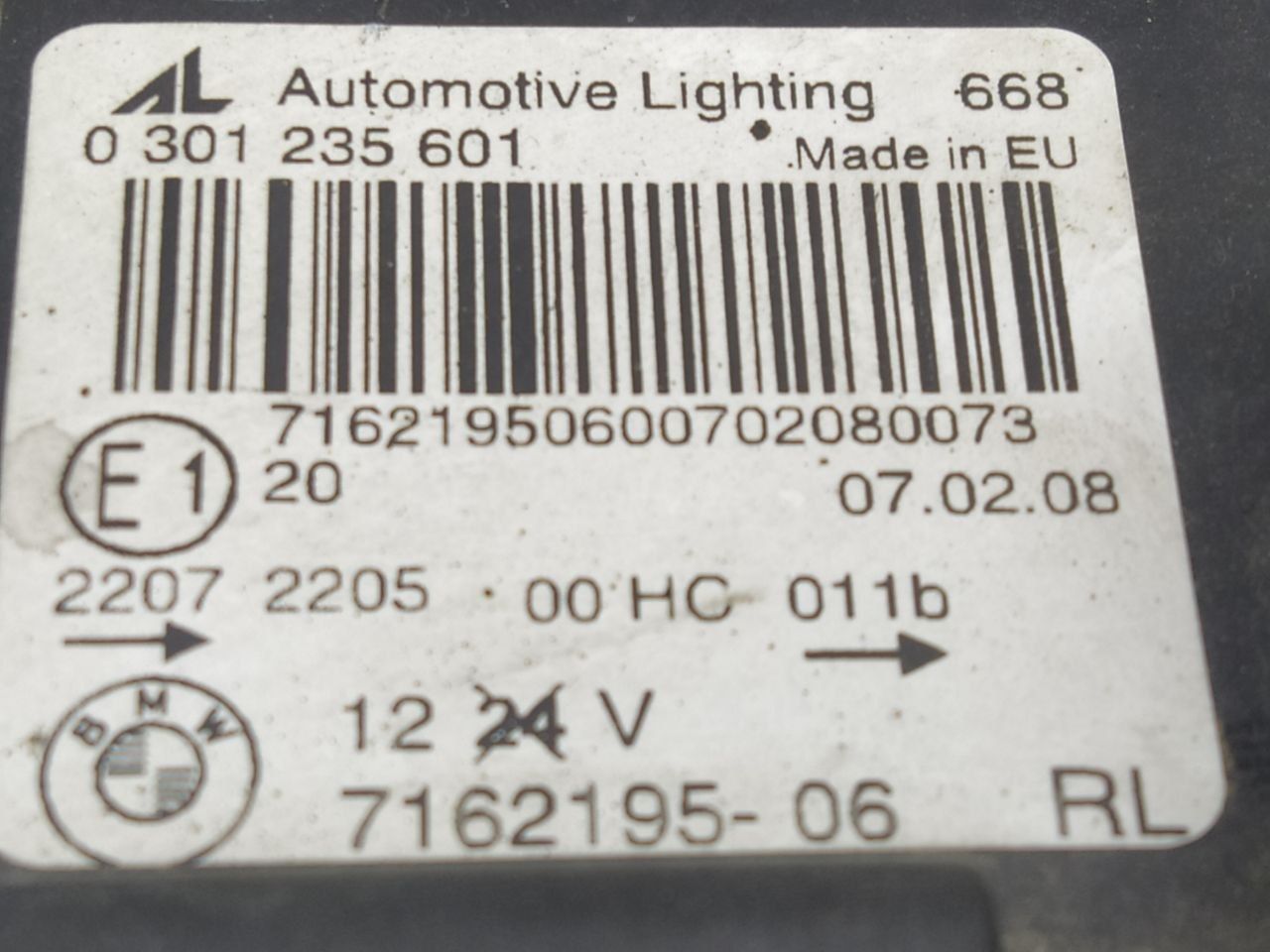 | Номер запчасти | 63127162195, 7162195, 0301235601 |