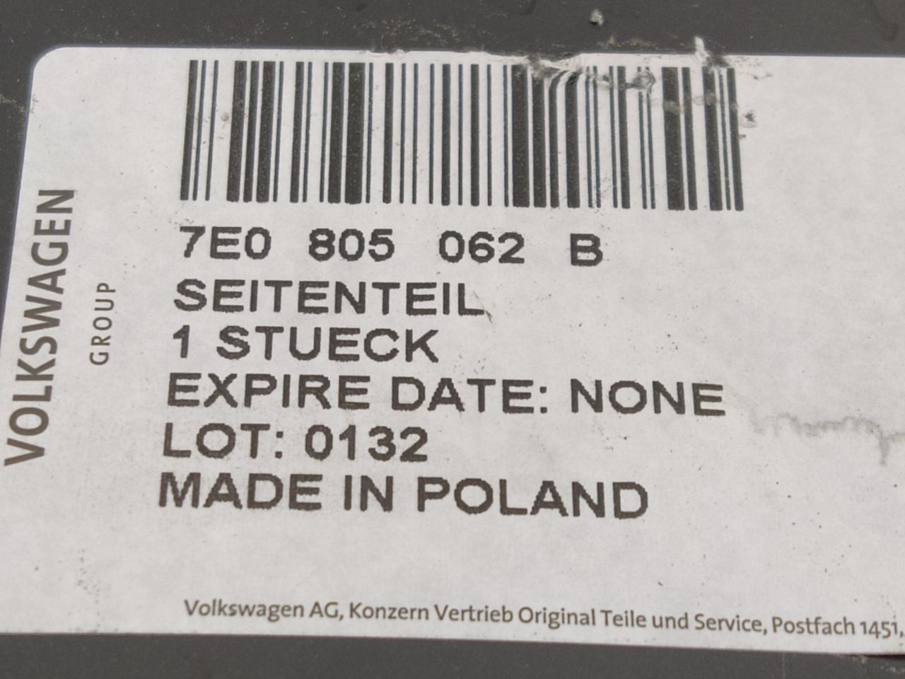 | Номер запчасти | 7E0805062B, 7H0810212 |
