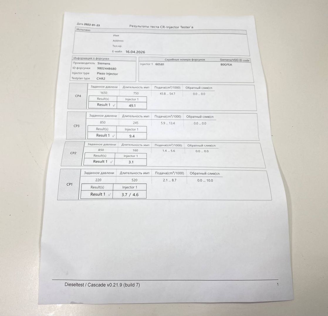 Continental. Из Англии. Хорошее состояние. Проверена на стенде. Все параметры в пределах допуска. Тест план прилагается. Сопротивление пьезо пакета 130 кОм.