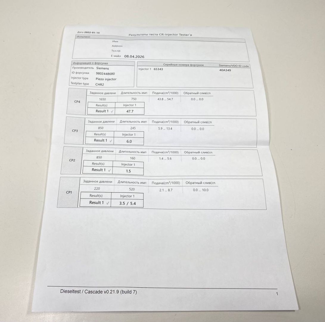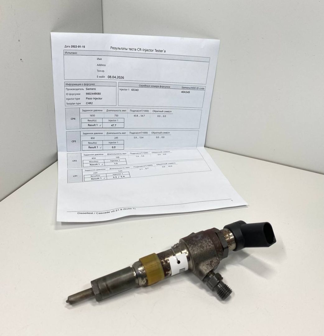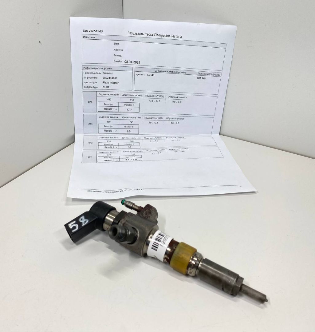 Continental. Из Англии. Проверена на стенде. Все параметры в пределах допуска. Низкое сопротивление пьезо пакета 58 кОм. Тест план прилагается.